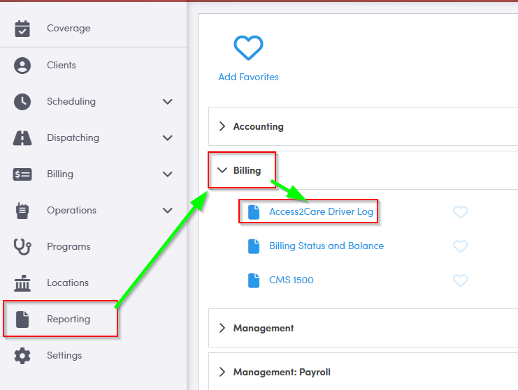 The Access2Care Driver Log is available to generate and include with your Access2Care billing. It contains a log for each driver, on the date trips took place, in the date range selected.