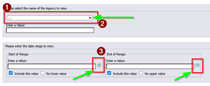 3. Select the beginning and end date by clicking the calendar icons.