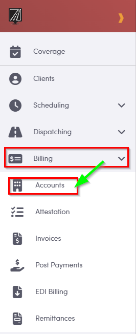 Navigate to the Billing , then select the Accounts .