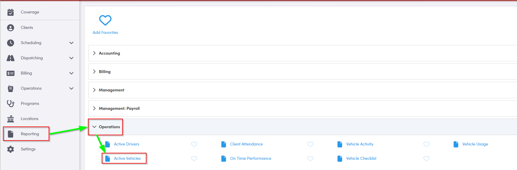 1. Double-click Active Vehicles to generate the report.