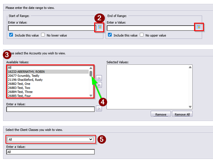 5. Select the Client Class you would like to view.