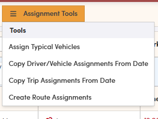- Assignment Tools is where typical vehicle, copying from date and route assignments can be done.