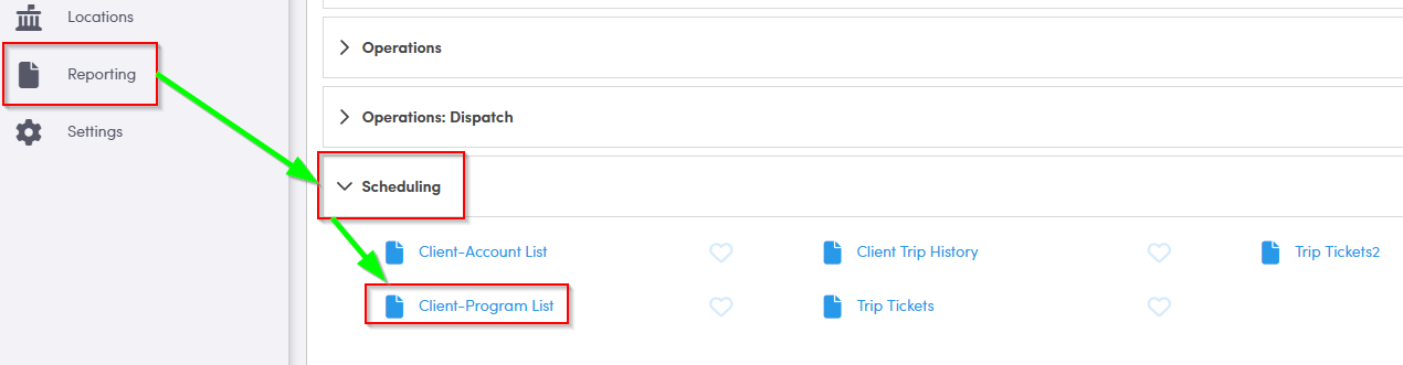 The Client-Provider List generates a list of clients, their account and their provider, within a specified date range.