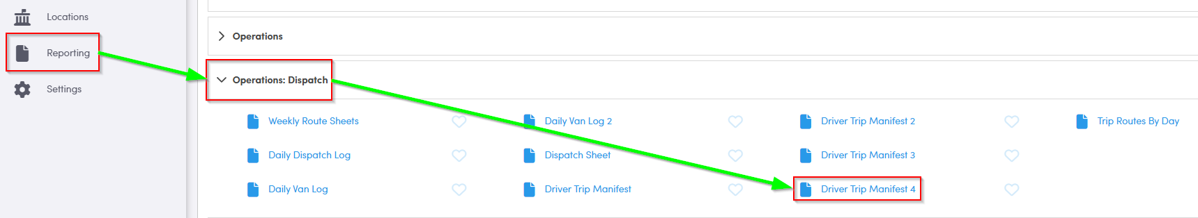 Navigate to the Reporting tab, then select Operations: Dispatch.