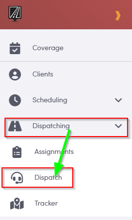 From the left-hand menu, first navigate to the **Dispatching** section, and then select **Dispatch** to open the Dispatch screen.