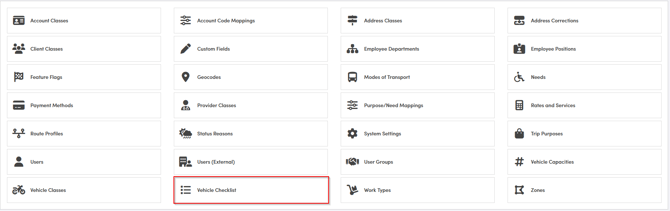 2.Locate the “Vehicle Checklist” option in the final row of the second column on the settings screen, then select it to proceed.