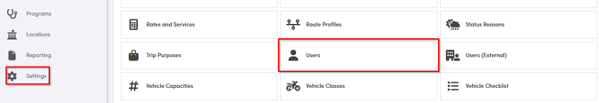 In the left hand menu bar navigate to Settings, then select the Users icon.