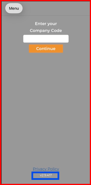 - At the bottom of the Company Sign In screen, the App Version is listed: