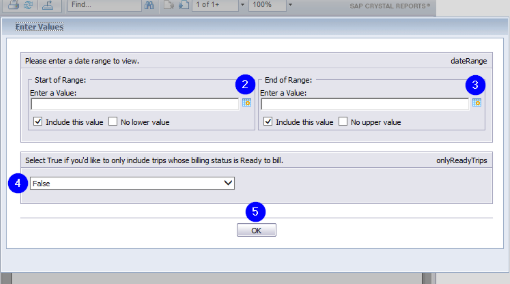 4. Select True if you would only like to view trips with the ready billing status. By default, False is selected and trips with all billing statuses will populate the report.