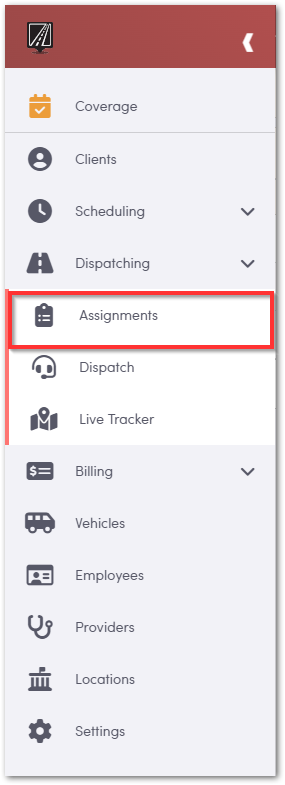 Hover over the fly-out menu on the left, click on Dispatching and then on Assignments.