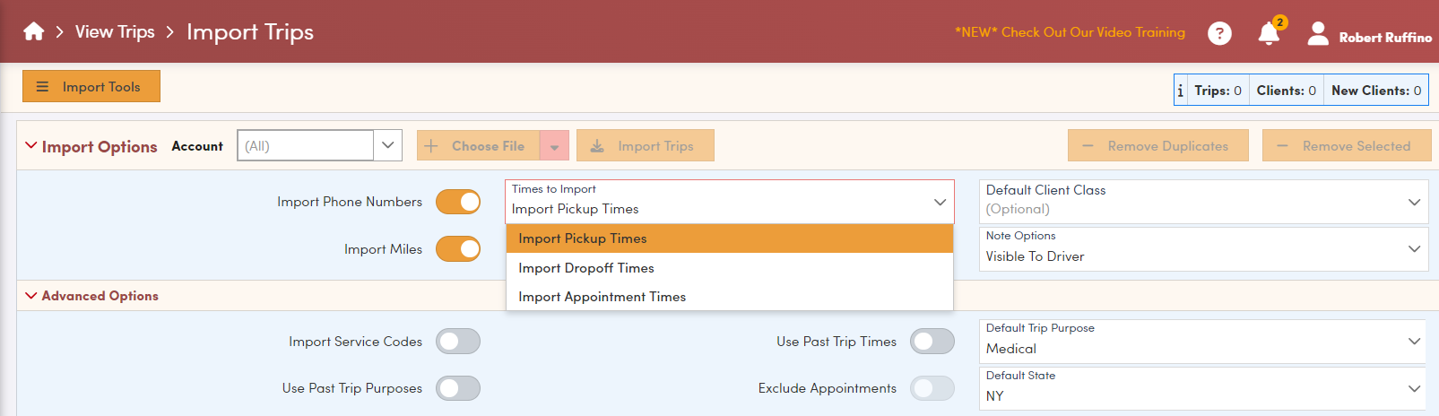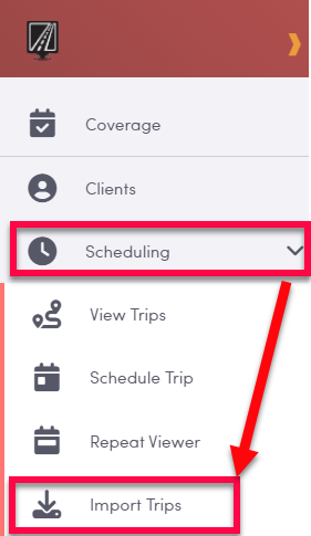 To begin, hover over the left side menu and expand Scheduling and select Import Trips