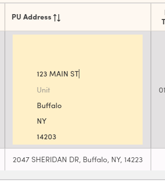 If there are any errors, or if you see something you want to change, each cell in this grid is editable if you click in it. For example, if you click in the PU address cell it expands for editing.
