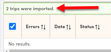 At this stage you may receive an error pop-up if any issues were found with importing the trips (read the details of the error to determine next steps) or you'll get a confirmation that the trips imported!
