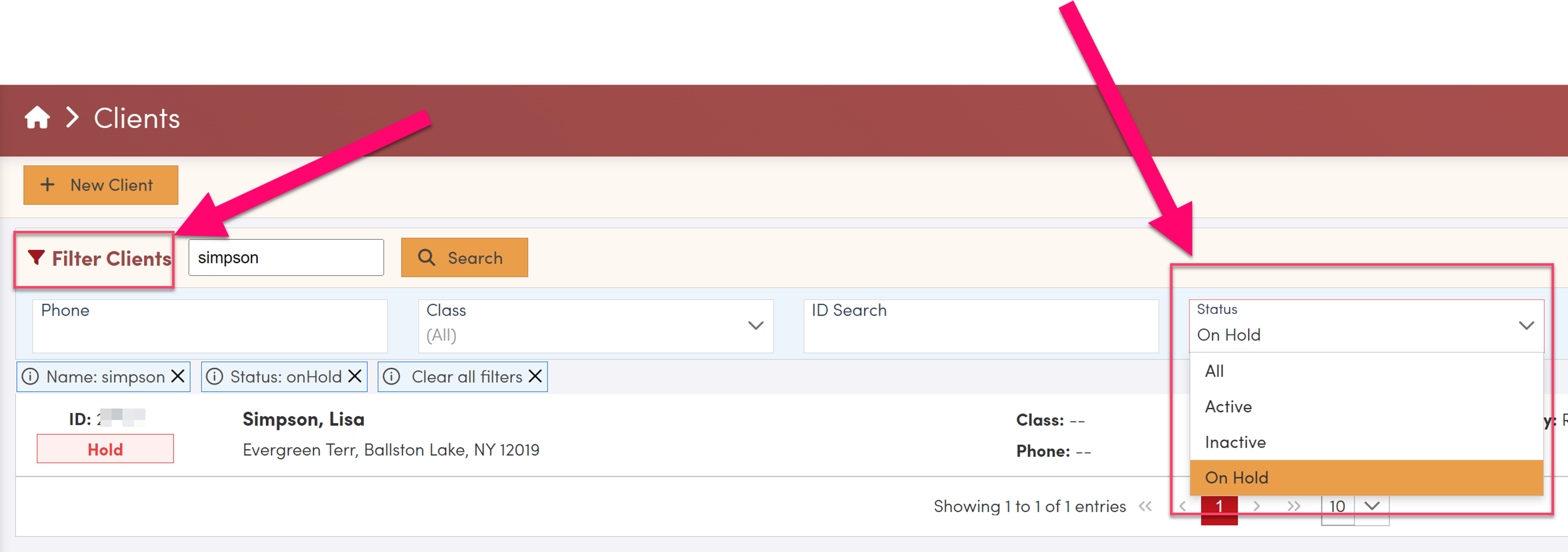 Searching Clients by Status