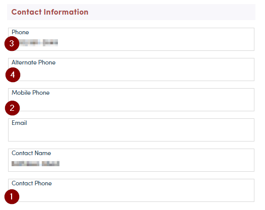 Client Phone number : To receive SMS trip reminders, client must have at least one phone number (SMS Enabled) saved under their profile. SMS reminders will be sent in the following order: first to the Contact Phone; if that number is unavailable or the message fails to deliver, the system will then try the Mobile Phone, followed by Phone1, and finally Phone2. If any number is missing or the SMS cannot be delivered, RoutingBox will automatically move to the next available number in the sequence.