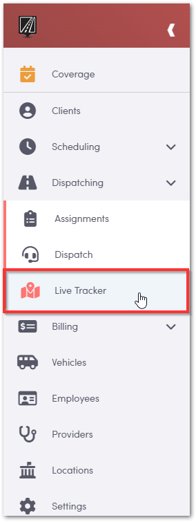 Navigate to the fly out menu on the left-hand side, click on Dispatching and then Live Tracker.