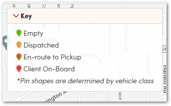 The Map Legend can be displayed on the bottom right of the Tracker. This can be hidden by clicking on the Key title bar.