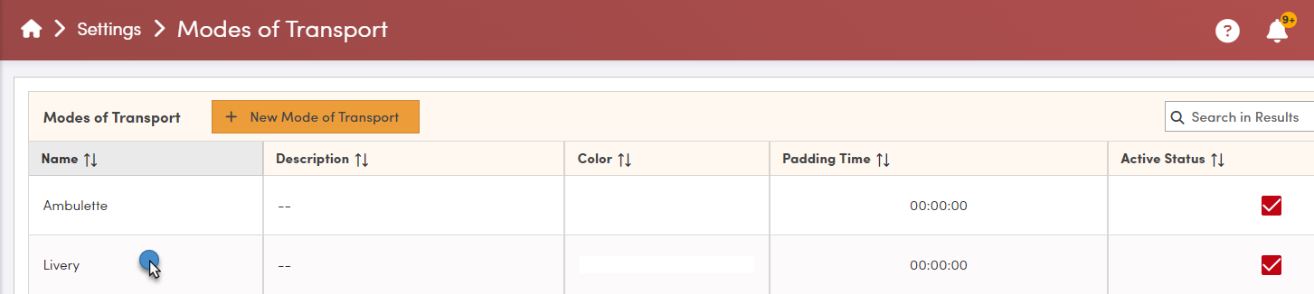 Select the Mode of Transport you are wanting to add the Padding Time to: