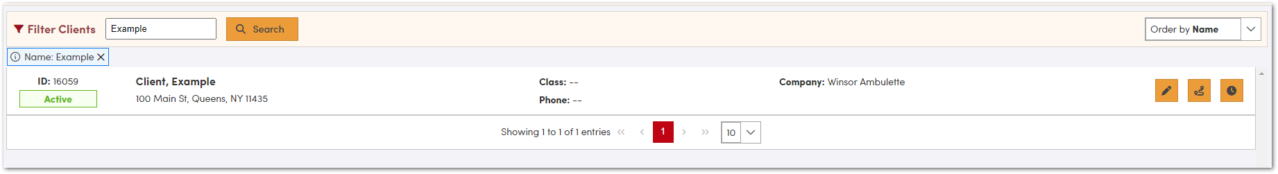Note: If you don’t know the name of the client leave the field blank and just click the search button to be taken to the full client list.