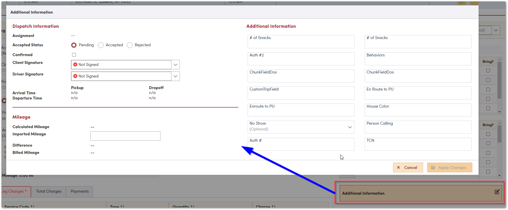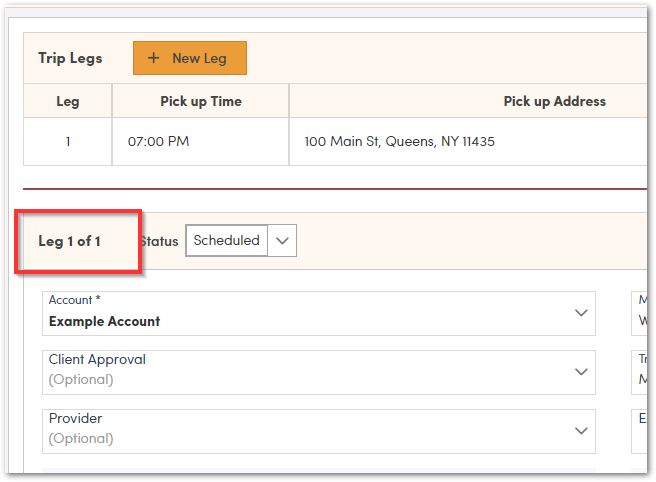 It’s a good idea to fill out the first leg completely before adding the Return Ride, so all fields will carry over to the second leg, including the Trip Notes at the bottom of the screen. Notes can be made visible to dispatch, drivers or both.