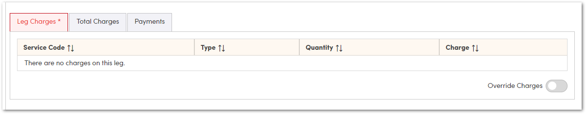 To make a change or add Services to this trip, choose Override Charges. This can only be done Per Leg.