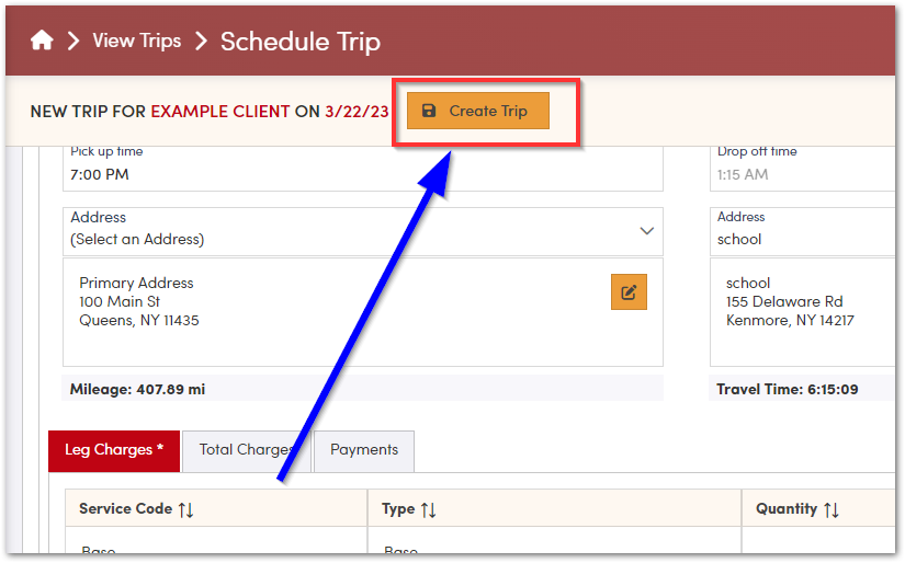 Once you’re all set with the information on this trip, you can click “Create Trip” at the top.