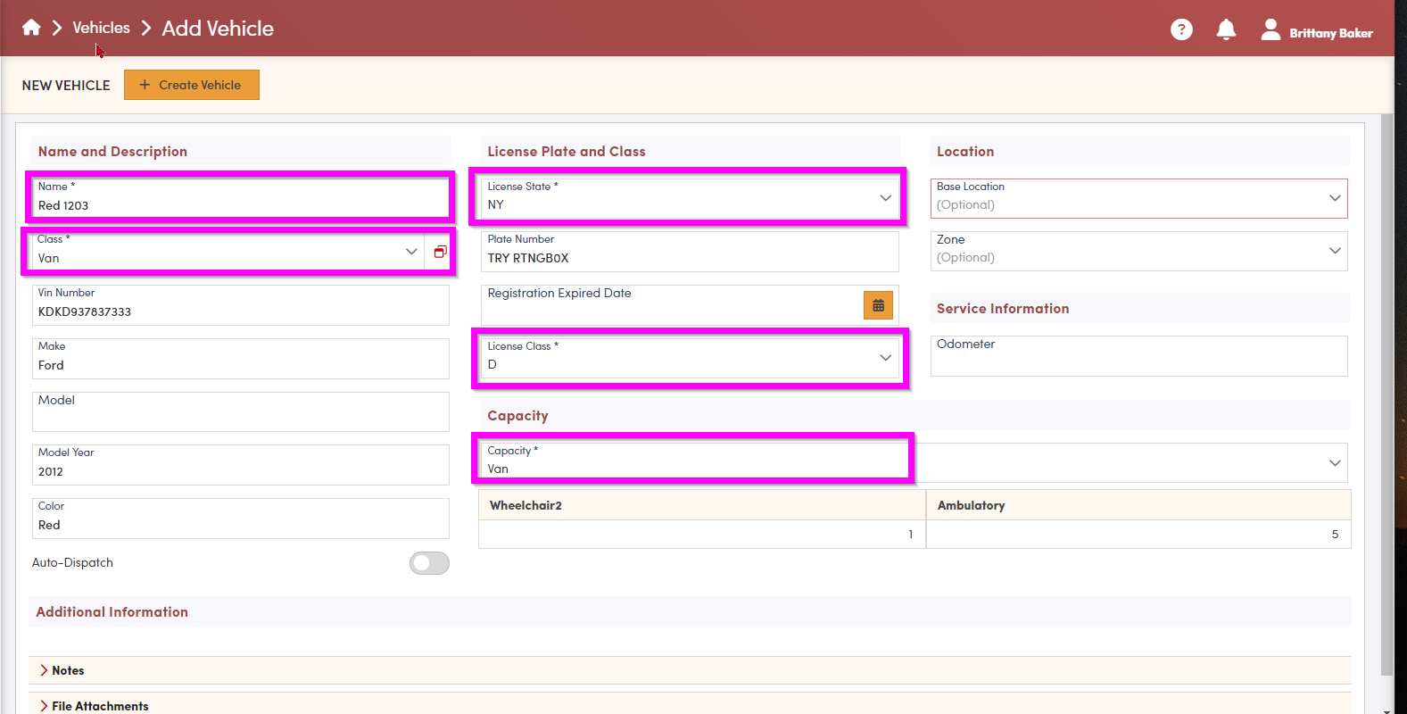 Once you've added all the necessary vehicle information, click "Create Vehicle" at the top.