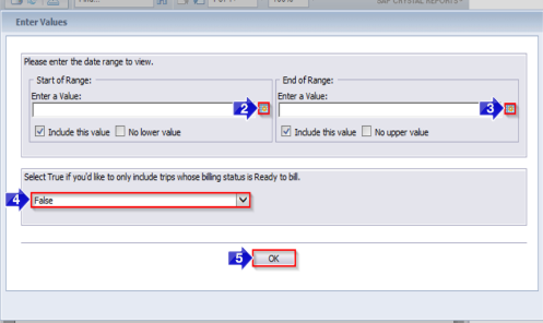 4. Select if you would only like to view trips with the billing status ready. By default, False is selected and trips with all billing statuses are displayed.