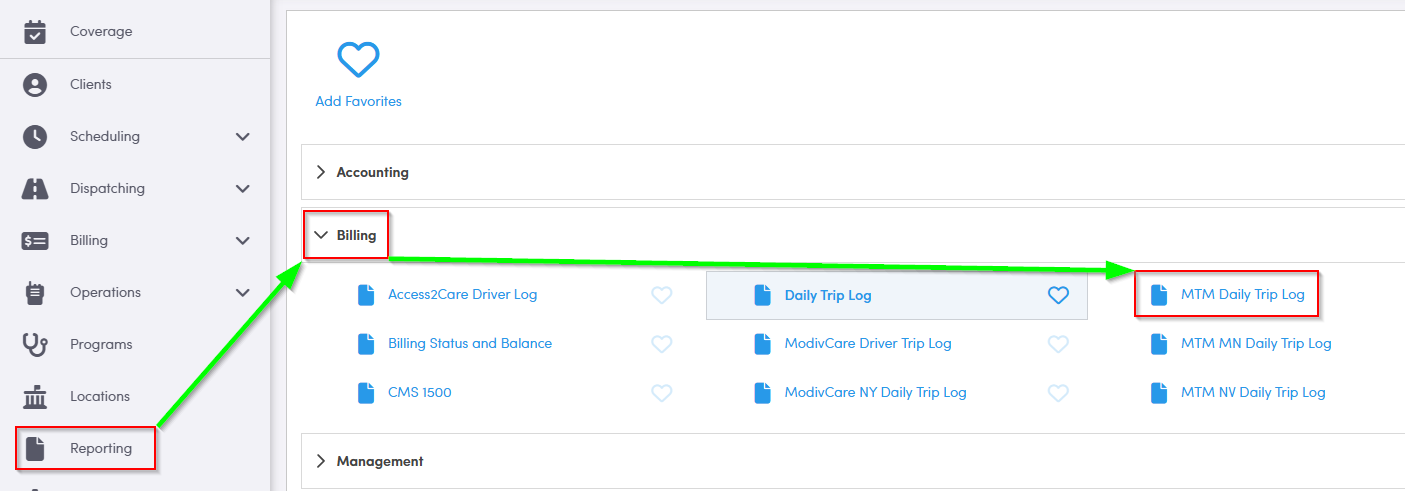 The MTM Daily Trip Log allows you to create a log to provide to MTM after your trips are completed. A list of trips per assignment per day will generate for the selected date range and will include actual times and client signatures.