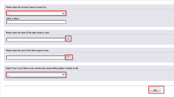 Select True if you would only like to view trips with a billing status of ready. By default, False is selected and trips with all billing statuses will populate on the report.