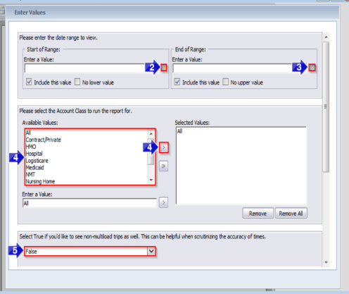 5. Select True if you’d like to view both multi-load and non-multi-load trips. By default, False is selected and only potential multi-load trips will populate the report.