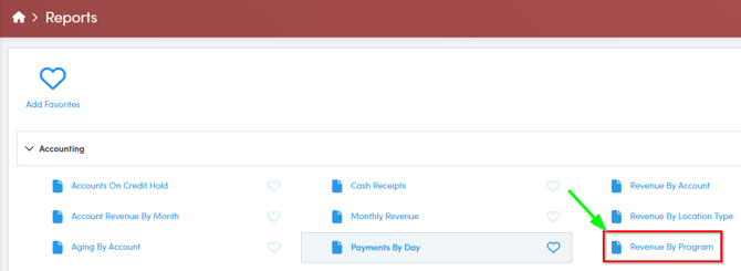 Navigate to the Reporting tab, then select Accounting.