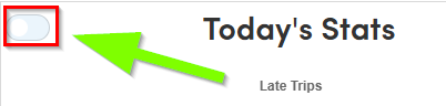 2. The Today’s/Tomorrow’s Stats section gives you a quick snapshot of your on-time versus late performance, the number of trips currently in progress, how many drivers are active, and the total count and status of your trips for the day. To switch between viewing today’s and tomorrow’s data, use the toggle in the top left-hand corner of this section.