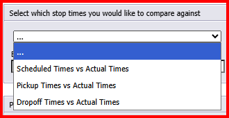Select which stop times you would like to compare against.