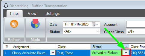- If the status still has not updated after a few minutes, a dispatcher can manually set the correct status from the Dispatch screen