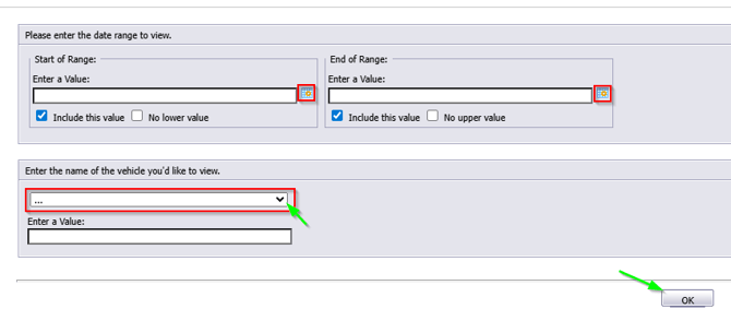 Choose which vehicle you would like to view the report for then select ok to run the report.